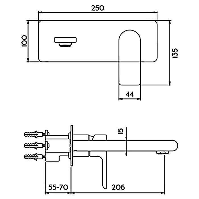 Смеситель для умывальника Gappo 35к G1099-21 нержавеющая сталь, встраиваемый, сатин
