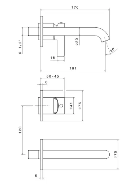 Встраиваемый в стену однорычажный смеситель для раковин.