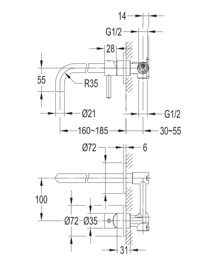 • длина излива от поверхности плитки: 18,5 см