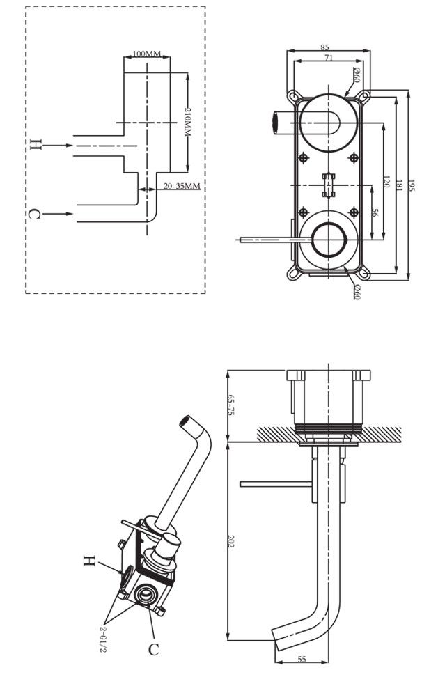 Встраиваемый смеситель для раковины Raiber Graceful RPG-004 золото матовое купить