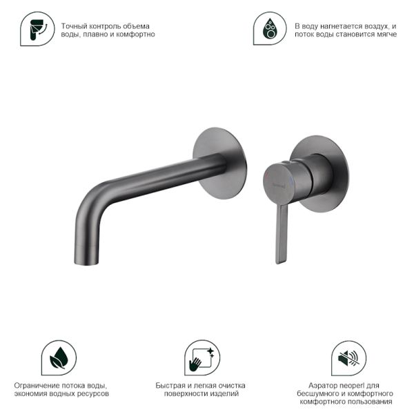 Смеситель для раковины Splenka S221.11.09, графит. Смеситель для раковины встраиваемый - это кач... Подробнее