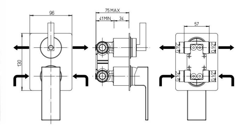 - Встраиваемый монтаж скрывает все соединения и оставляет на виду только рычаг управления, экономя пространство.
