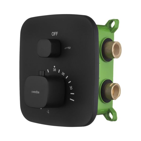 Встраиваемый смеситель Swedbe Platta 9031B термостатический подключение на два выхода чёрный купить