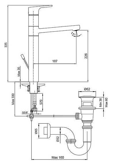 Высокий смеситель для раковины E.C.A. Luna 102108974EX с донным клапаном хром купить