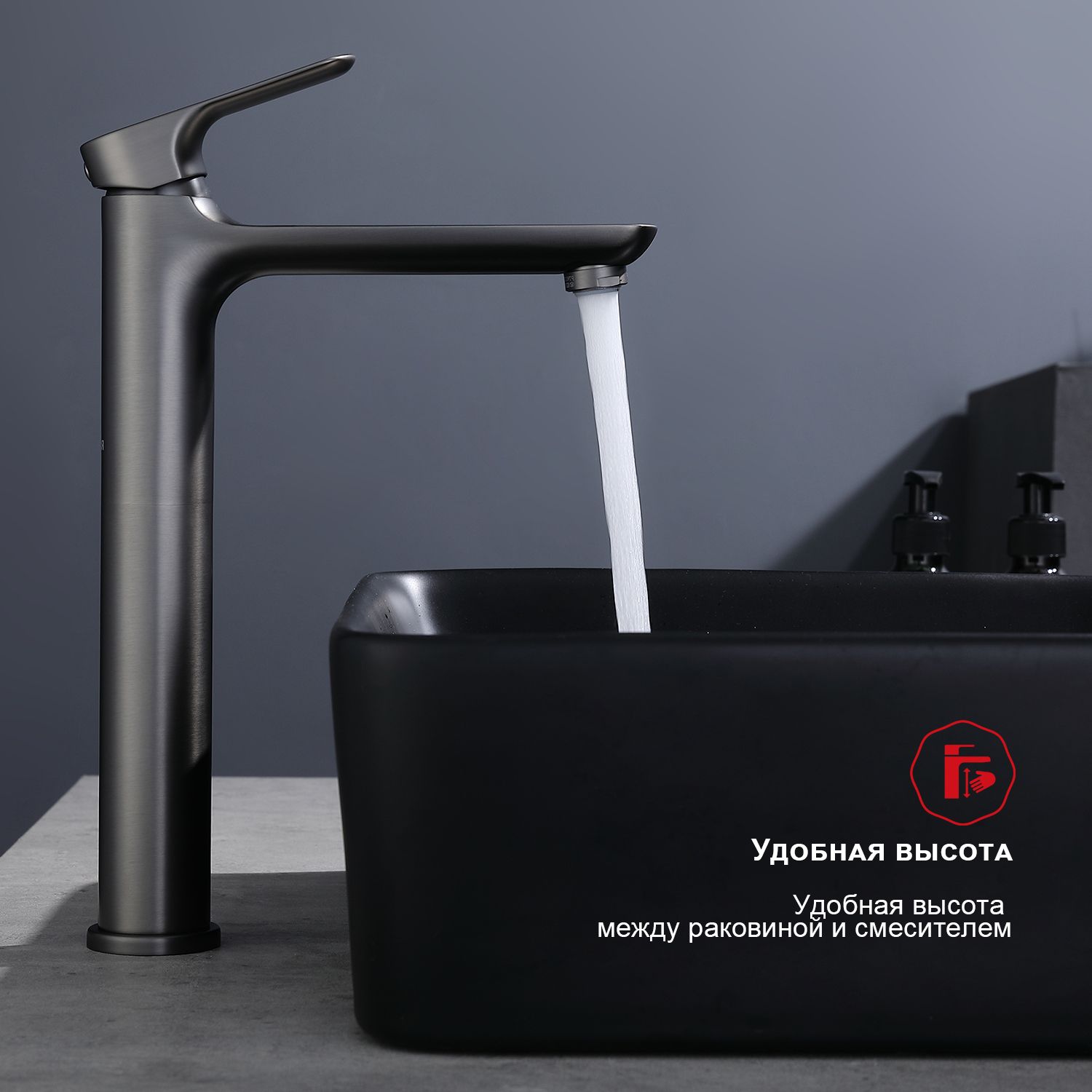 Высокий смеситель для раковины Raglo R03.15.09 графит купить