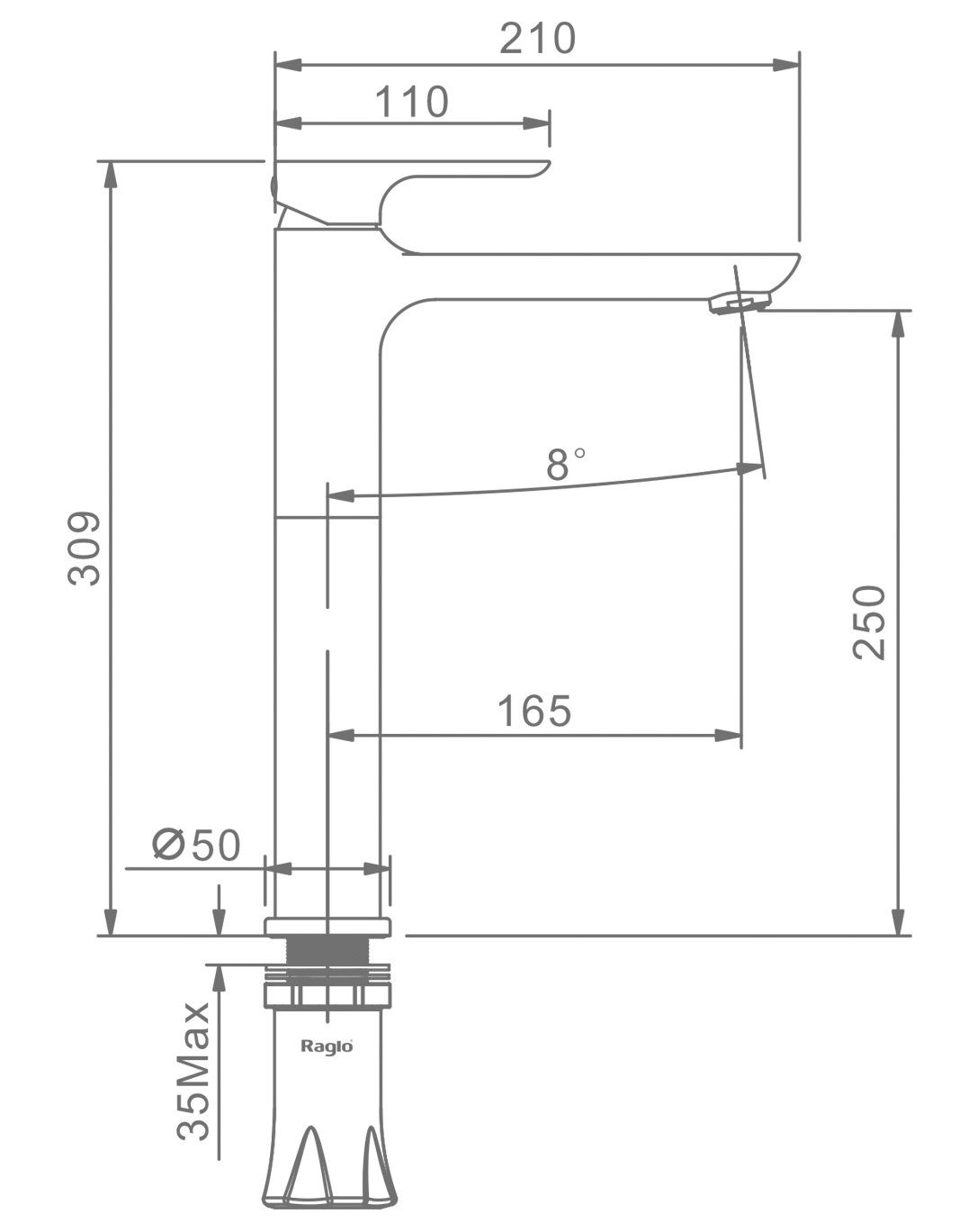 Высокий смеситель для раковины Raglo R03.15.09 графит