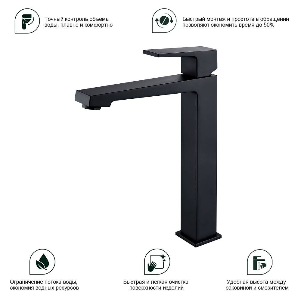 Высокий смеситель для раковины Splenka S01.15.06 чёрный купить