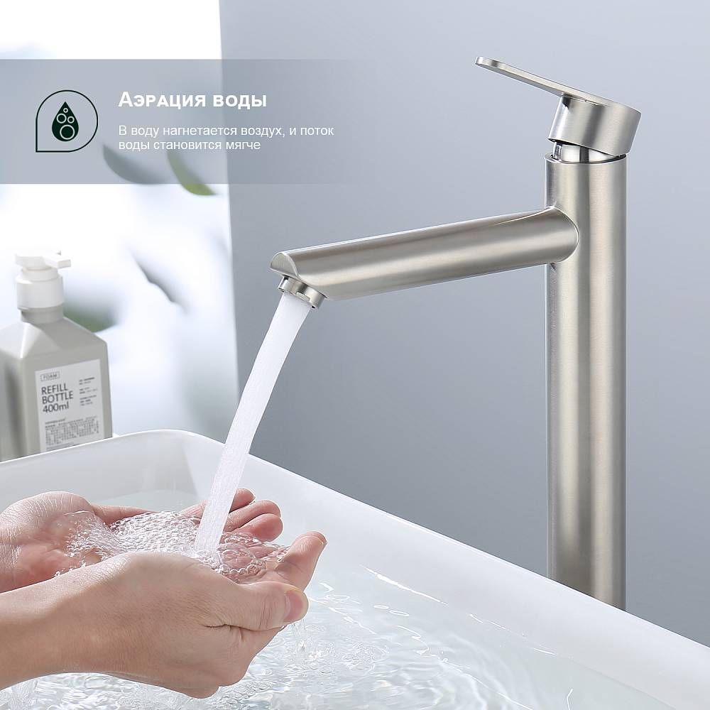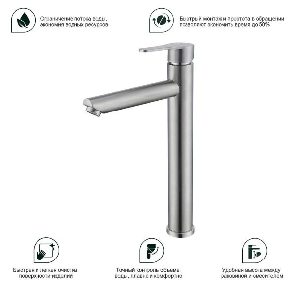 Высокий смеситель для раковины Splenka S223.15.05 сатин купить