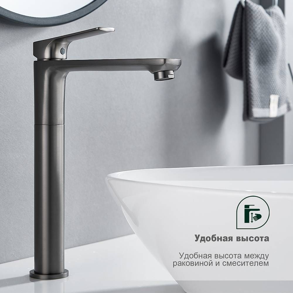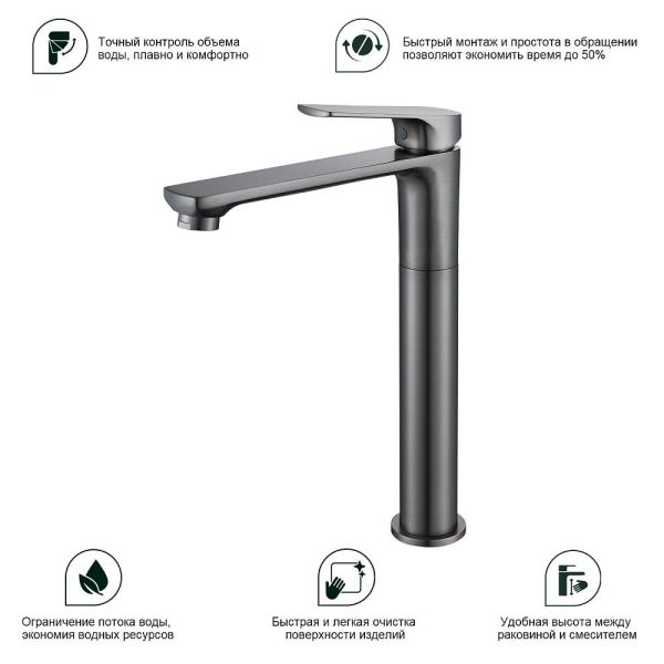 Высокий смеситель для раковины Splenka S30.15.09 графит