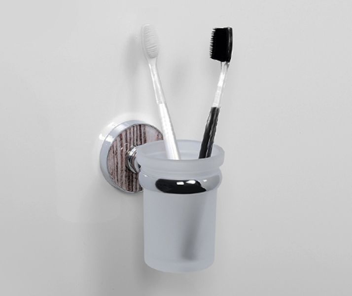 WasserKRAFT Стакан для щеток K-6928Размер: Ш70 х Г111 х В100 ммМонтаж: настенныйЦвет держателя: хром, акриловая вставка "обработанное дерево"Стакан: матовое стеклоМатериалы: металл, акрил, хромоникелевое покрытие, уплотнительные пластиковые кольца, матовое стекло