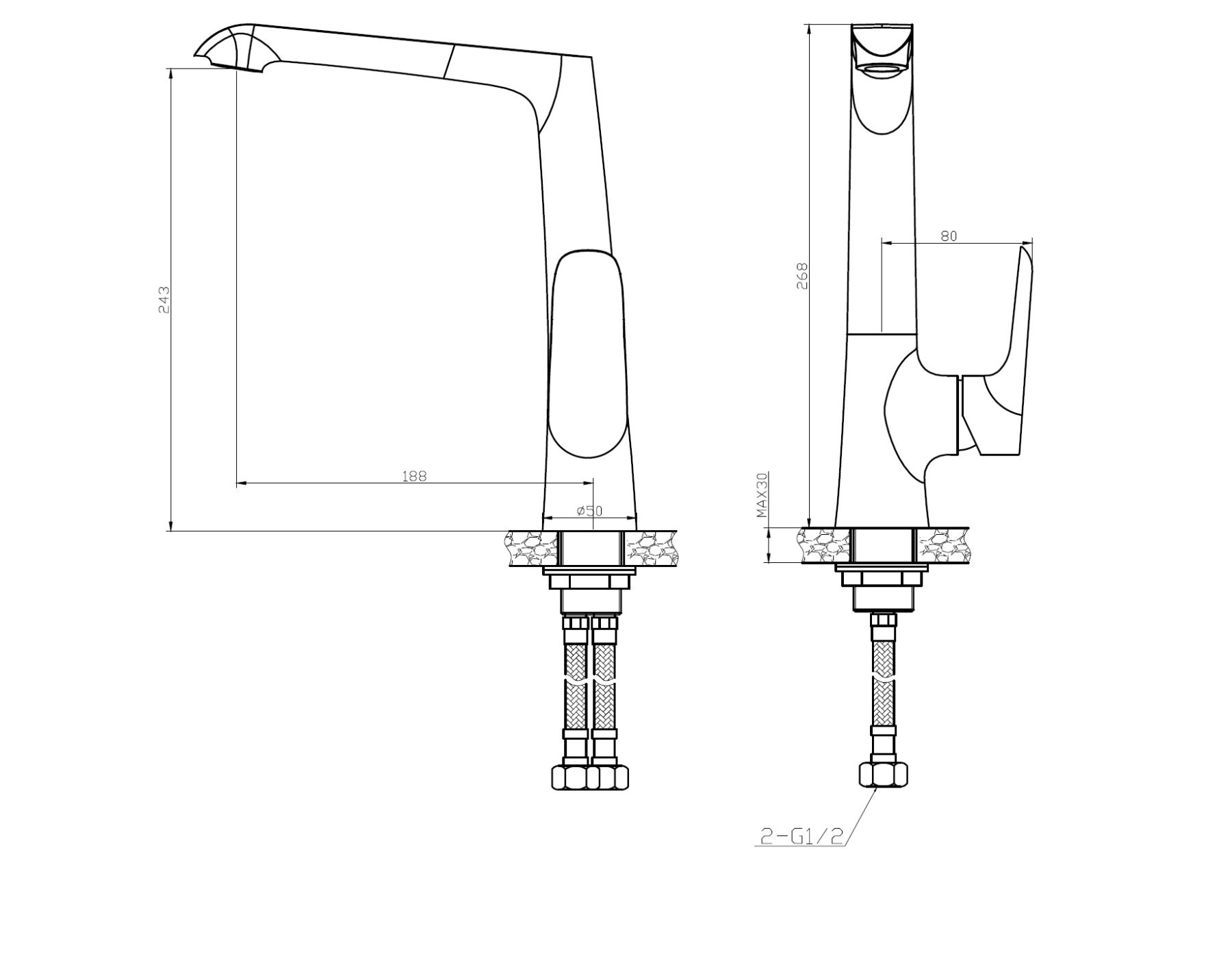 • Высота смесителя: