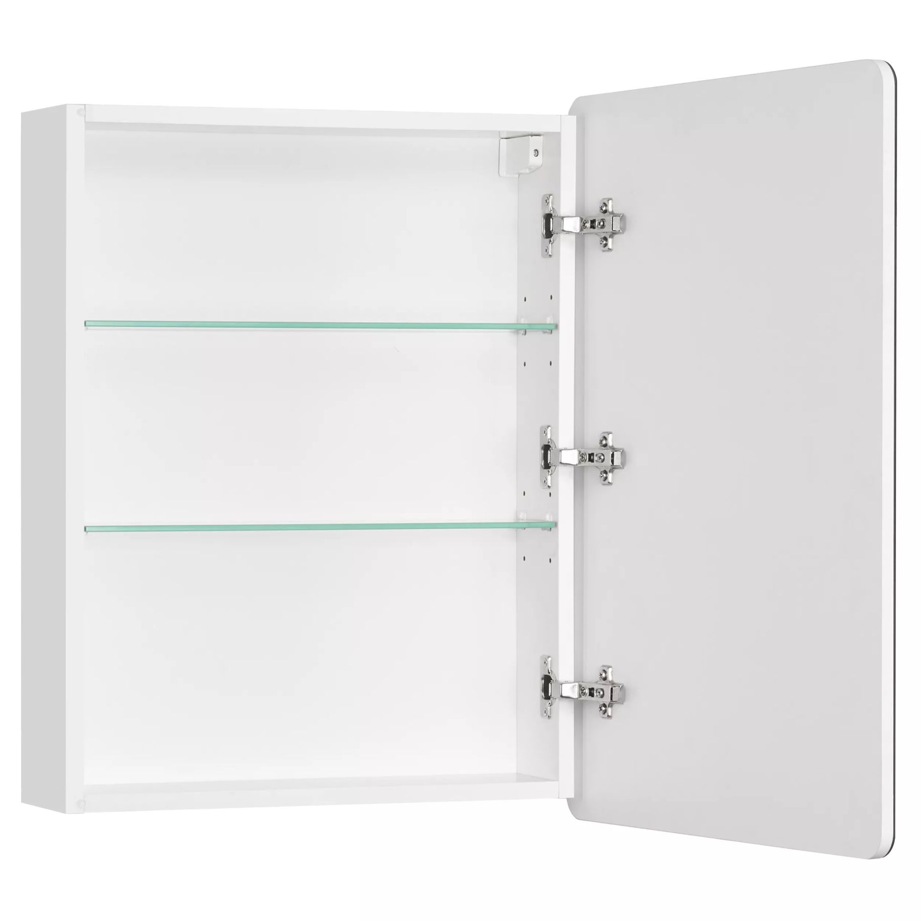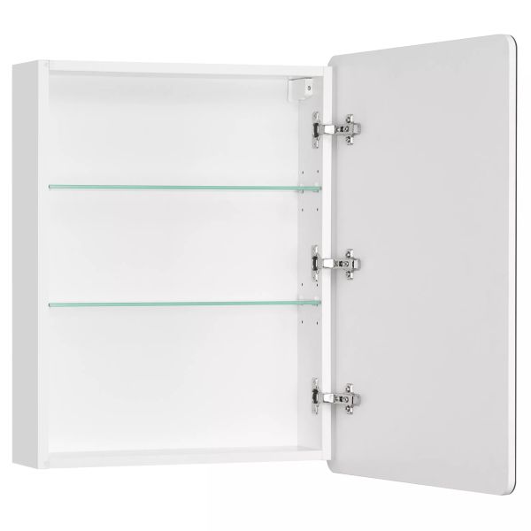 Зеркальный шкафчик Скай PRO 55 отличается строгим и лаконичным дизайном в духе актуальных модных тенденций. Эстетику минимализма подчеркивает отсутствие лицевой фурнитуры. Корпус выполнен из влагостойкой ЛДСП и покрыт белой глянцевой краской ультрафиолетового отверждения, которая придаёт изделию привлекательный внешний вид и защищает от влаги. За зеркальным фасадом-створкой расположены две стеклянные полки, на которых можно разместить необходимые мелочи.