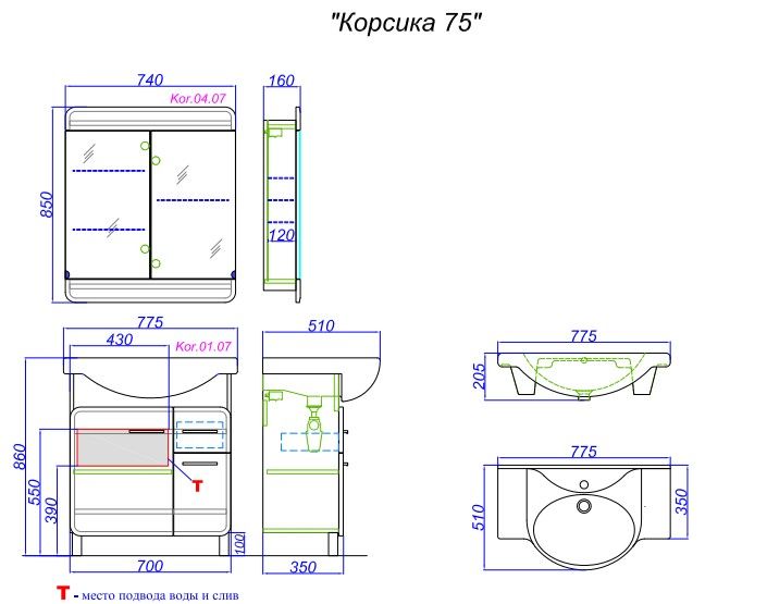 Зеркальный шкаф Aqwella Корсика Kor.04.07