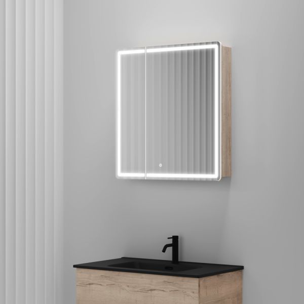 Зеркальный шкаф для ванной с подсветкой Sancos Mirror MI70EG 70 см дуб галифакс натуральный