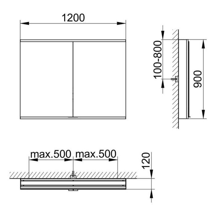 Зеркальный шкаф, алюминий серебристый анодированный,1200 x 900 x 120 mm,