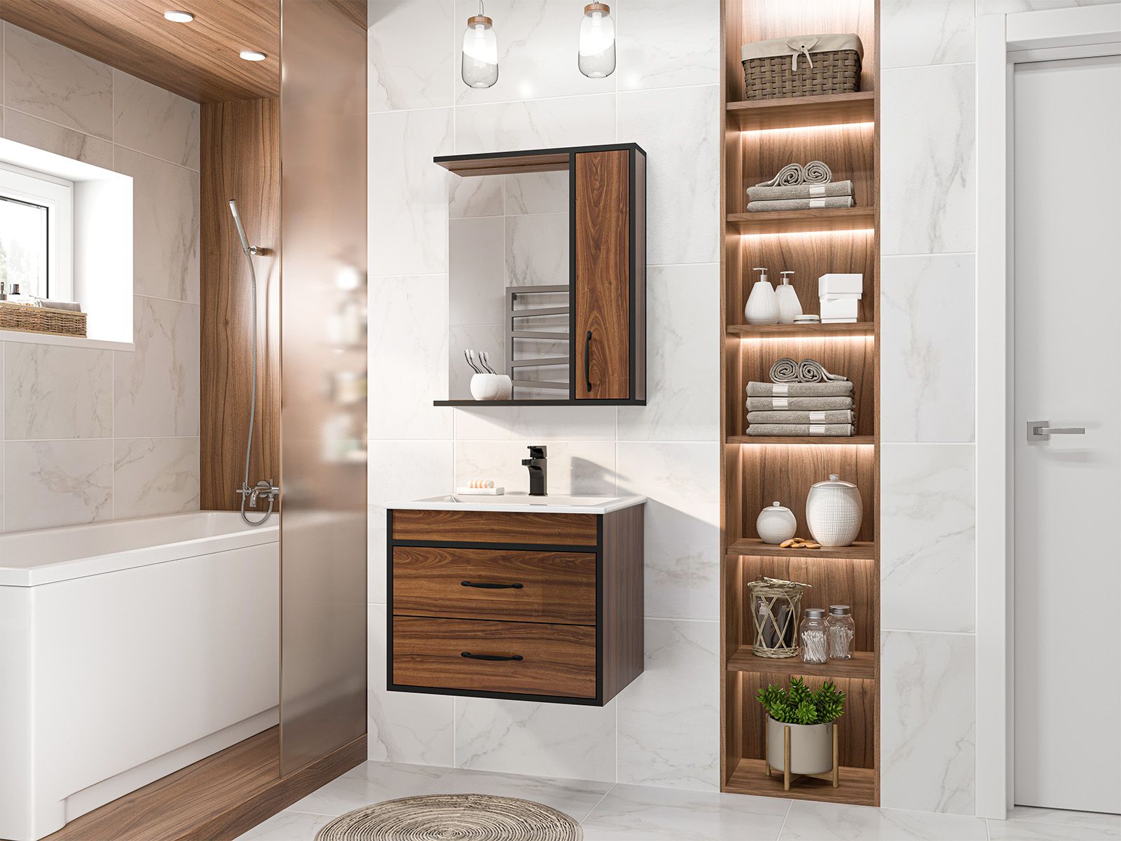 Зеркальный шкаф для ванной комнаты – это стильный акцент, который может преобразить любое пространство. С его элегантными линиями и продуманным дизайном, он идеально вписывается в современный интерьер. Внешняя поверхность шкафа, выполненная из качественных материалов, отражает свет, создавая ощущение простора и уюта.Внутреннее содержание шкафа умело организовано: разнообразные полки и отсеки позволяют удобно разместить все необходимые аксессуары – от косметики до бытовой химии. Зеркало, интегрированное в фасад, визуально расширяет пространство и облегчает утренние рутинные процедуры.Зеркальный шкаф для ванной комнаты – это идеальное сочетание красоты и практичности, которое станет незаменимым помощником в вашем дневном ритме.