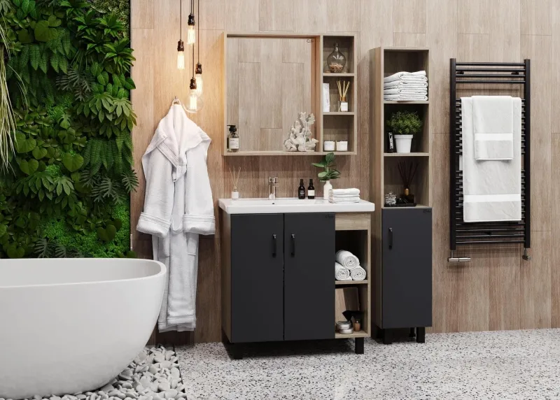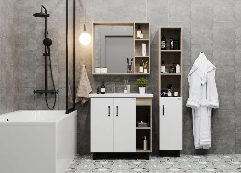 Зеркальный шкаф выполнен из ЛДСП, устойчивой к механическим воздействиям, перепадам температур и высокой влажности.
