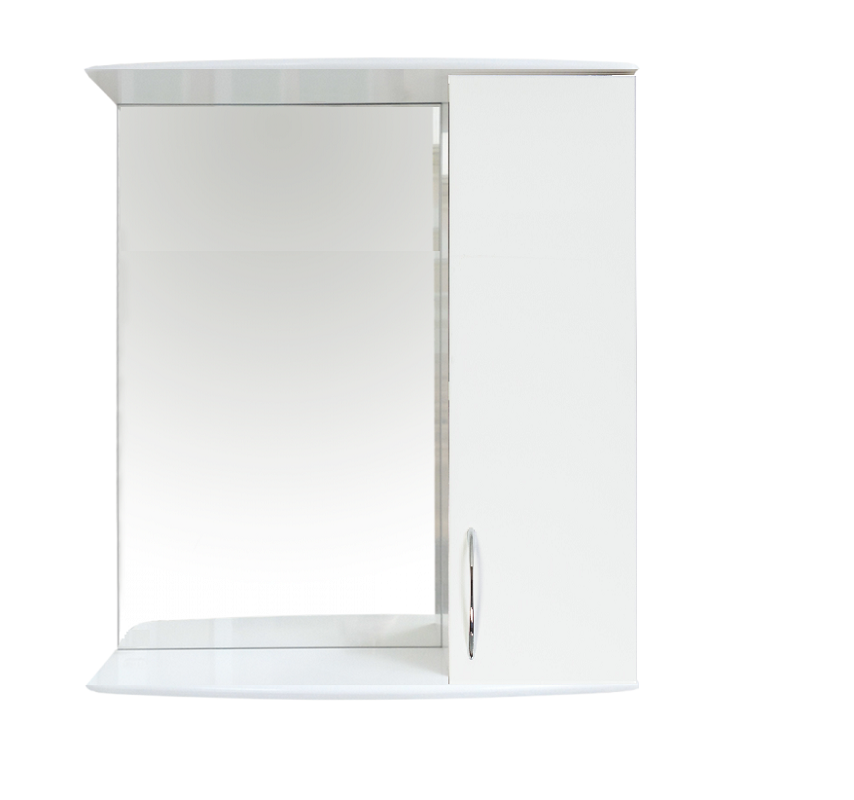 Зеркальный шкаф универсальный. Фасад зеркальное полотно и МДФ в пленке - белый глянец, корпус ЛДСП - белый глянец. Дверца с механизмом доводчика, обеспечивающим плавное закрывание. В комплекте внутренняя полочка. Фурнитура в цвете хром.