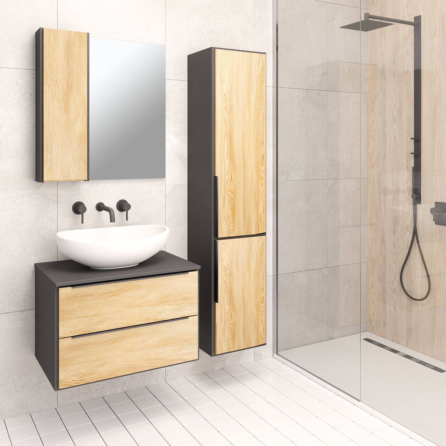 Зеркальный шкаф Runo дуб черный Мальта 70 (00-00001101)