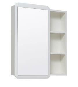 Зеркальный шкаф без подсветки с одной распашной дверкой и открытыми полками (слева или справа, з... Подробнее