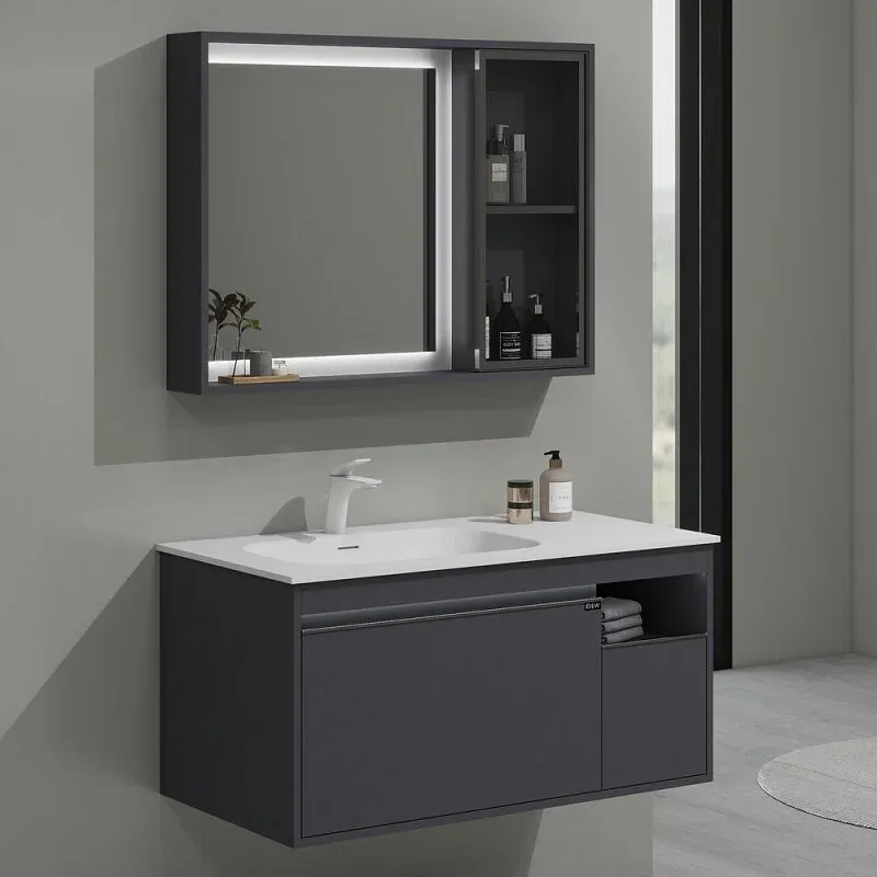 Новинка датского бренда Black&White  в габаритных размерах 100×52 см.В концепции изделия лежит свободное пространство для хранения косметических принадлежностей, а также трендовое направление в создании мебели для ванной комнаты – смещение чаши для расширения полезной площади на столешнице. Корпус изготовлен из девятислойной фанеры и окрашен эмалью серого цвета, такая комбинация позволяет сделать корпус максимально влагостойким. Раковина — столешница производится из искусственного камня на основе минералов-Corian. Материал не обладает пористостью, а также приятен тактильно. Фурнитура для открывания ящиков установлена компании UniHopper с доводчиками. U 910 продукт с широким функционалом и эргономикой, который наполнит ванную комнату скандинавским стилем.