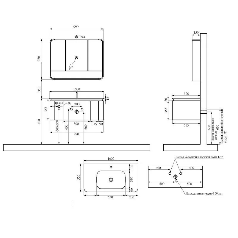 Зеркальный ящик из коллекции U 930 компании Black&White. Корпус изготовлен из влагостойкой девятислойной фанеры и окрашен эмалью, а отсутствие острых углов по периметру пересекается с концепцией основной тумбы. Для хранения косметических принадлежностей предусмотрены три распашных ящика с зеркальными фасадами, а также открытая полочка в ширину всего изделия. Петли для открывания фасадов установлены фирмы UniHopper.Зеркальный ящик U 930– готовое решение для хранения гигиенических принадлежностей и наполнения стилем Вашей ванной комнаты.