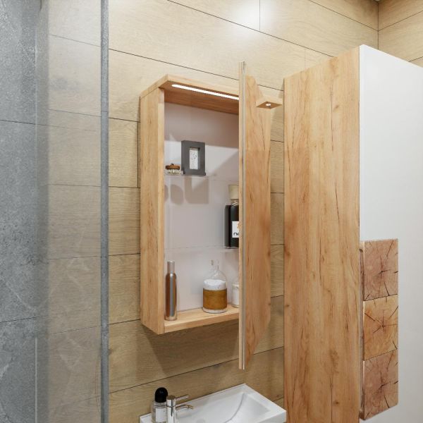 Зеркальный шкаф с подсветкой Бриклаер Форест 4627125414695 40 см дуб золотой/антрацит