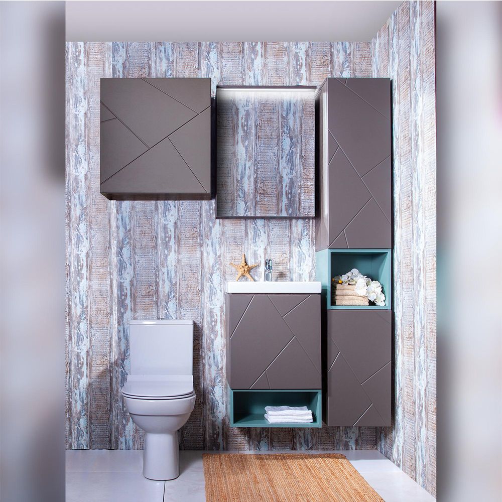 Внутреннее содержание шкафа умело организовано: разнообразные полки и отсеки позволяют удобно разместить все необходимые аксессуары – от косметики до бытовой химии. Зеркало, интегрированное в фасад, визуально расширяет пространство и облегчает утренние рутинные процедуры.