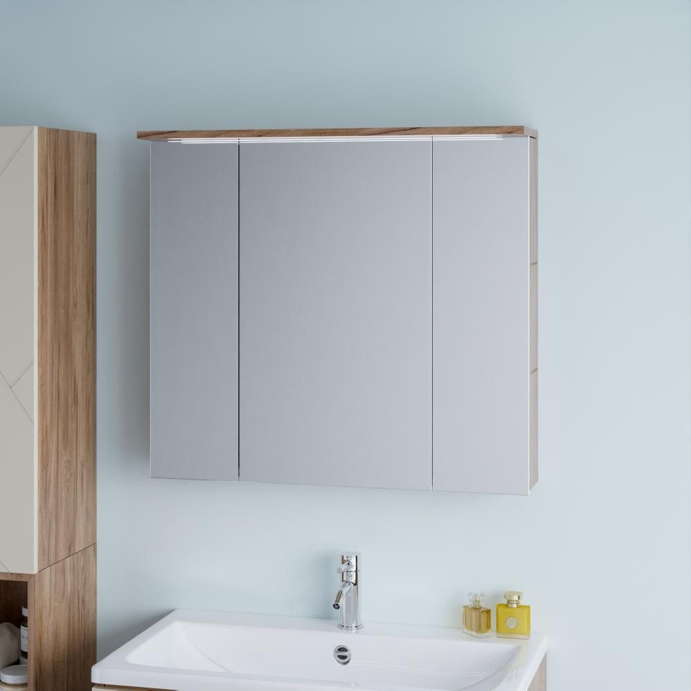 Зеркальный шкаф с подсветкой Бриклаер Кристалл 4627125417207 75 см дуб крафт табачный купить