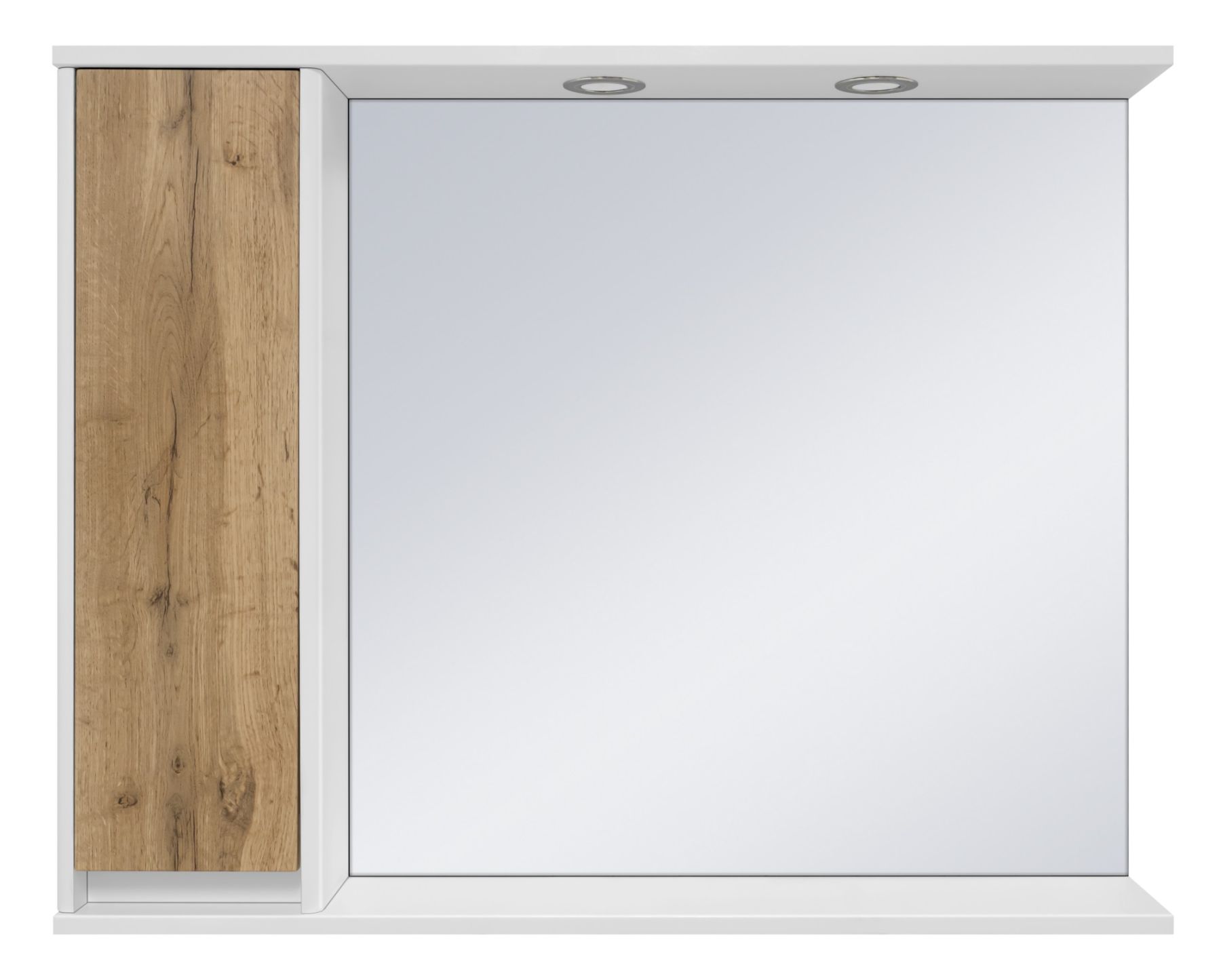 Зеркальный шкаф с подсветкой Misty Адриана левый 90см дуб Вотан/белый