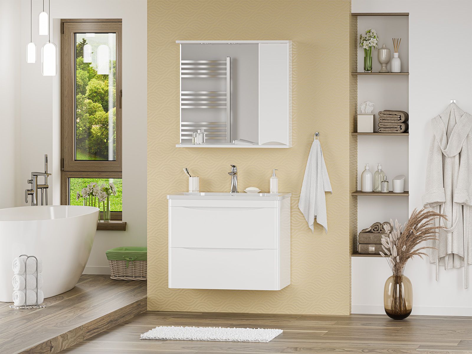 Зеркальный шкаф для ванной комнаты – это стильный акцент, который может преобразить любое пространство. С его элегантными линиями и продуманным дизайном, он идеально вписывается в современный интерьер. Внешняя поверхность шкафа, выполненная из качественных материалов, отражает свет, создавая ощущение простора и уюта.Внутреннее содержание шкафа умело организовано: разнообразные полки и отсеки позволяют удобно разместить все необходимые аксессуары – от косметики до бытовой химии. Зеркало, интегрированное в фасад, визуально расширяет пространство и облегчает утренние рутинные процедуры.Зеркальный шкаф для ванной комнаты – это идеальное сочетание красоты и практичности, которое станет незаменимым помощником в вашем дневном ритме.