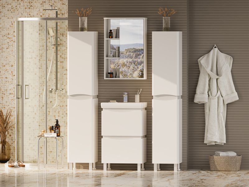 Зеркальный шкаф для ванной комнаты – это стильный акцент, который может преобразить любое пространство. С его элегантными линиями и продуманным дизайном, он идеально вписывается в современный интерьер. Внешняя поверхность шкафа, выполненная из качественных материалов, отражает свет, создавая ощущение простора и уюта.Внутреннее содержание шкафа умело организовано: разнообразные полки и отсеки позволяют удобно разместить все необходимые аксессуары – от косметики до бытовой химии. Зеркало, интегрированное в фасад, визуально расширяет пространство и облегчает утренние рутинные процедуры.Зеркальный шкаф для ванной комнаты – это идеальное сочетание красоты и практичности, которое станет незаменимым помощником в вашем дневном ритме.