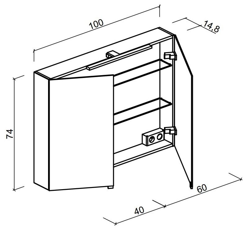 • 2 распашных фасада, полки стеклянные 2 шт.