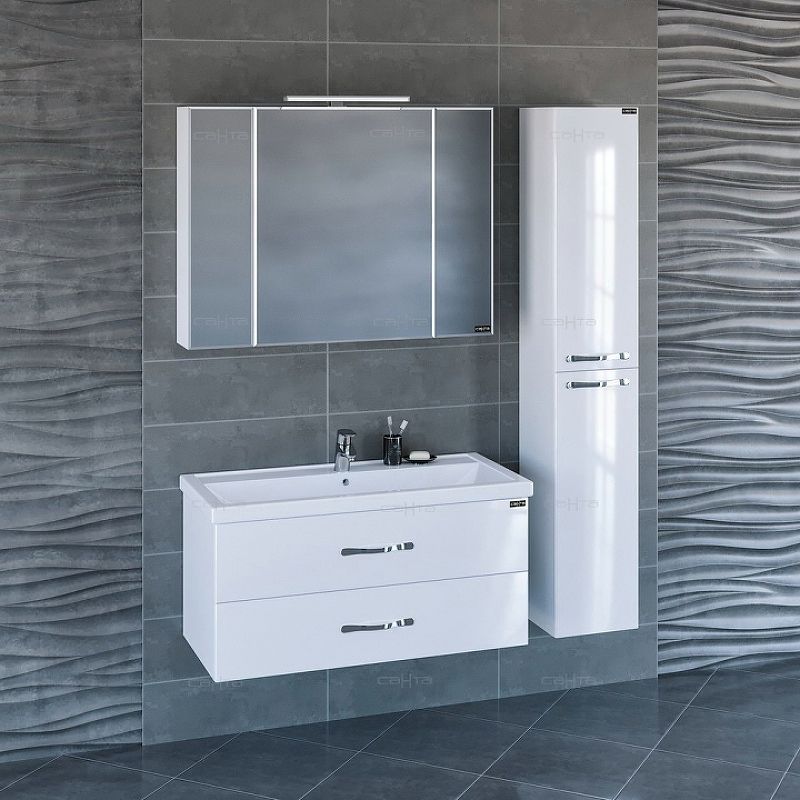 Зеркальный шкаф с подсветкой СанТа Стандарт 113013 100см белый купить