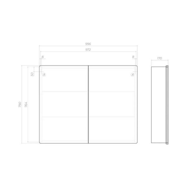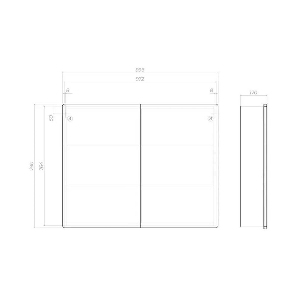 Зеркальный шкаф VIGO Geometry 119, 100 см. 2 дверцы, петли с механизмом доводчика, 4 стеклянных ... Подробнее