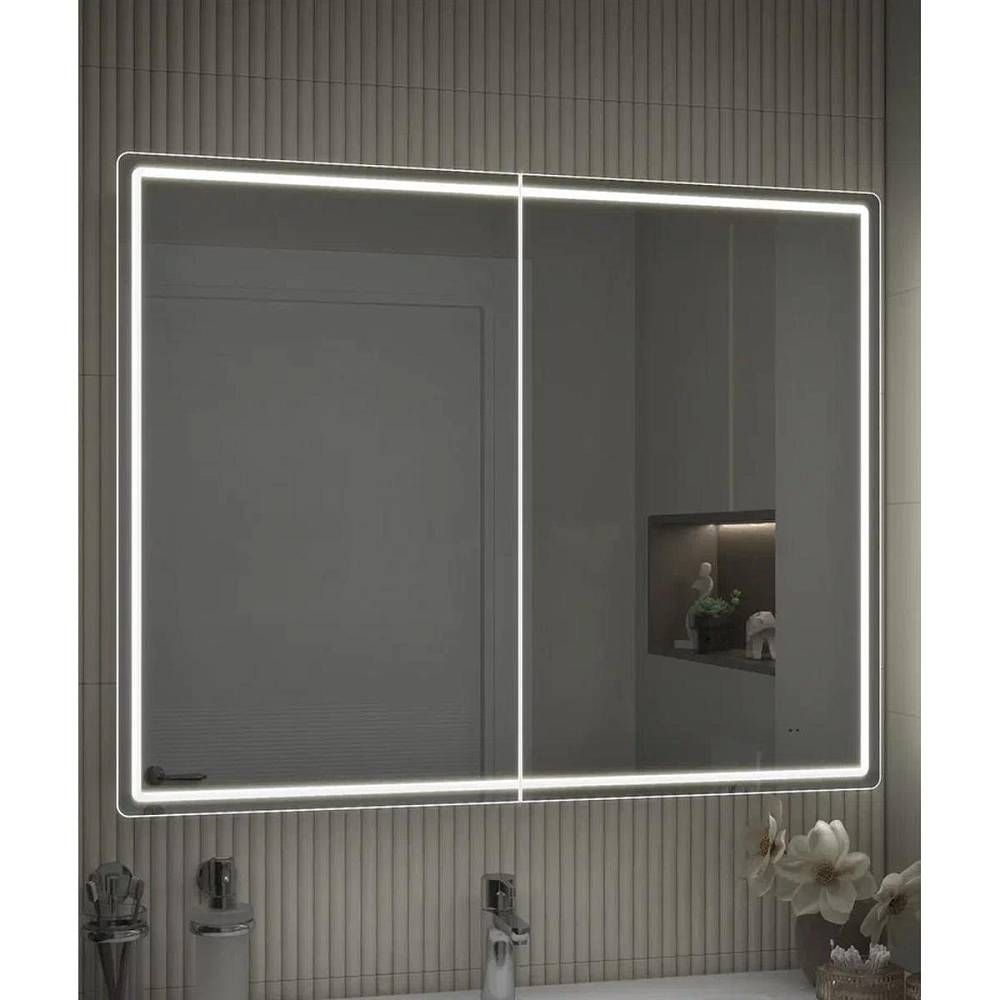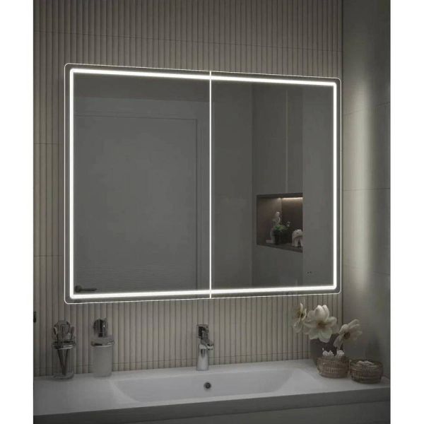 Зеркальный шкаф VIGO Geometry 119, 100 см. 2 дверцы, петли с механизмом доводчика, 4 стеклянных полки, светодиодная подсветка по периметру, бесконтактное включение (на взмах).