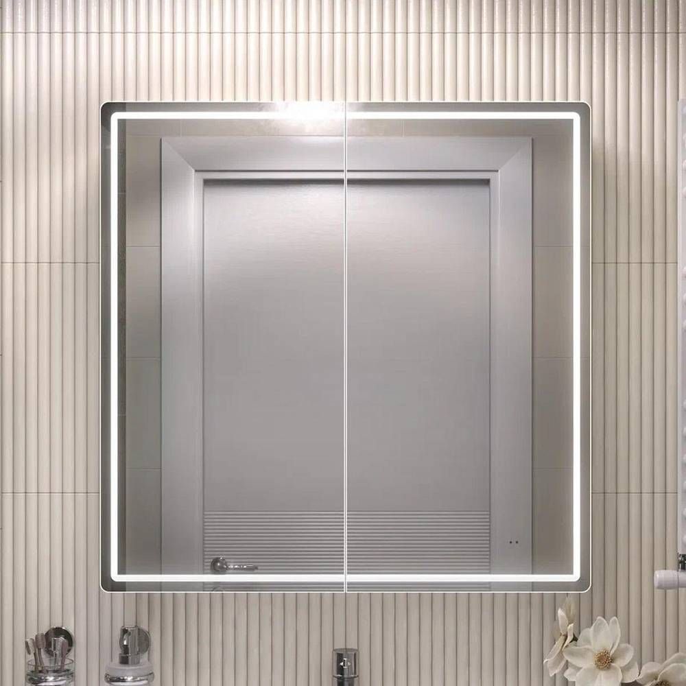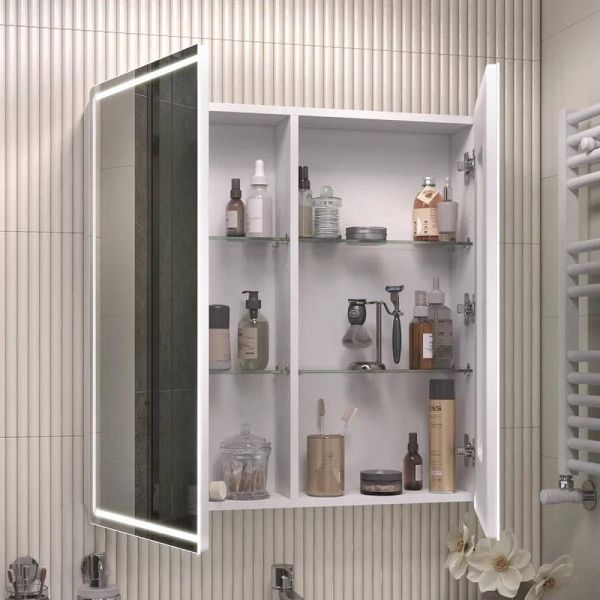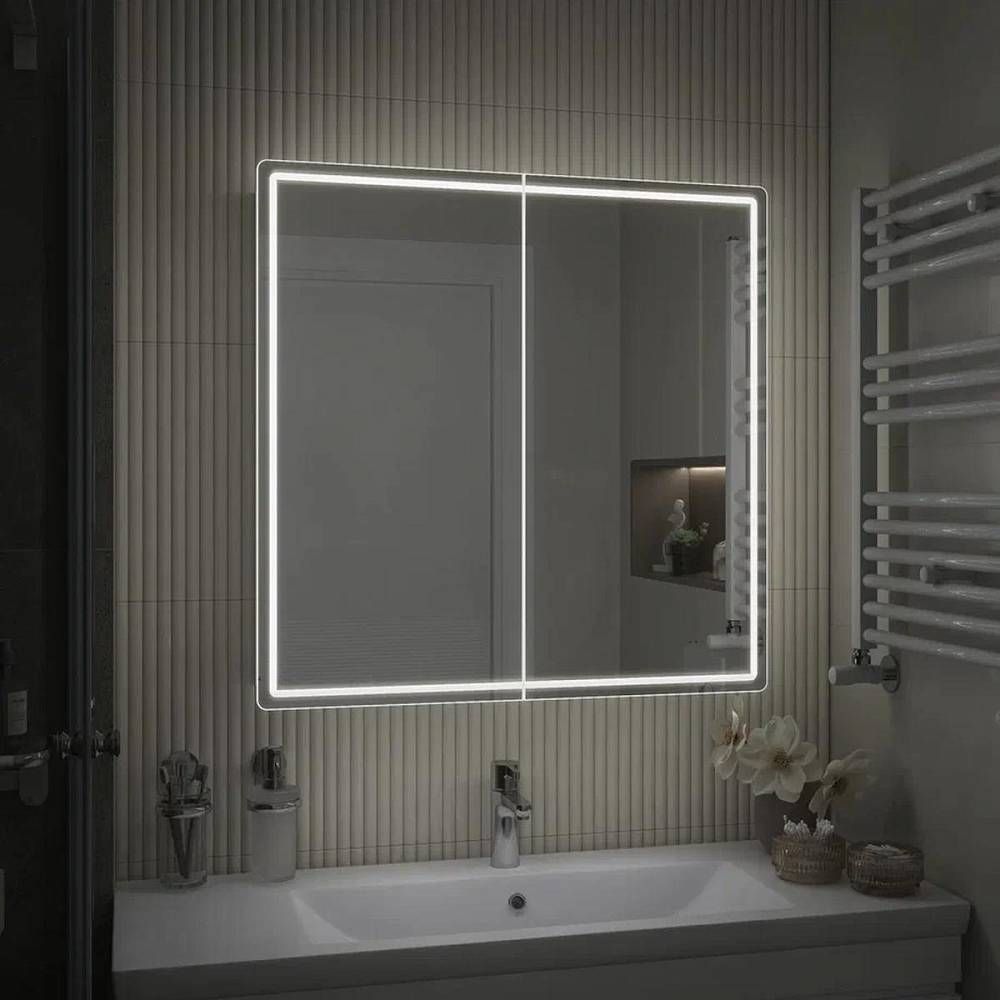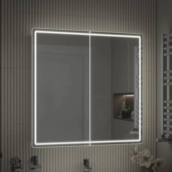 Зеркальный шкаф VIGO Geometry 221, 80 см. 2 дверцы, петли с механизмом доводчика, 4 стеклянных полки, светодиодная подсветка по периметру, бесконтактное включение (на взмах), функция антизапотевания.