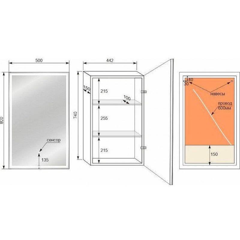 Зеркальный шкаф Style Line Квартет 50 СС-00002382 с подсветкой Белый купить