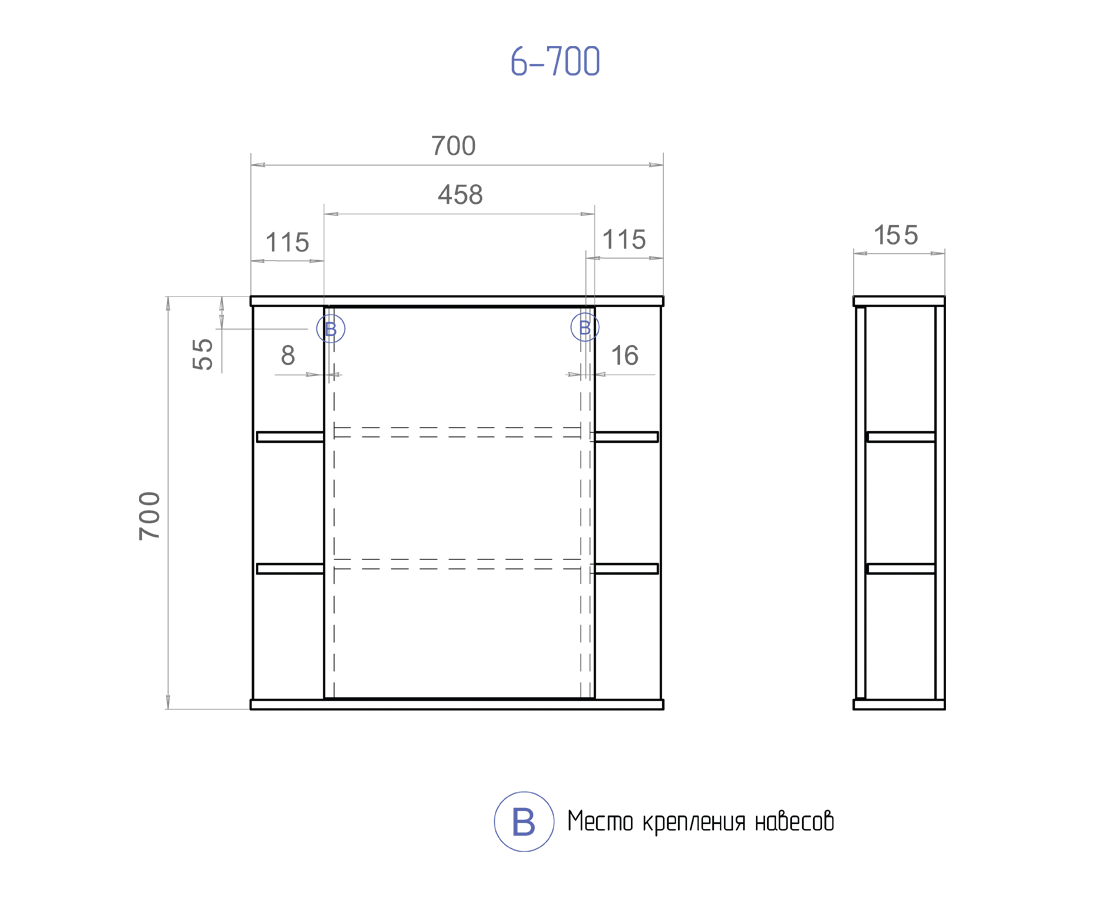 1 дверца с зеркалом; 2 полки ЛДСП, 4 полки МДФ
