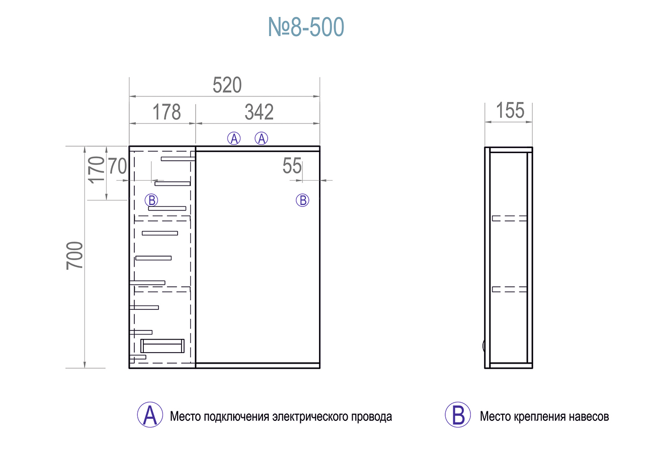 Зеркальный шкаф Vigo Diana 500 левый купить