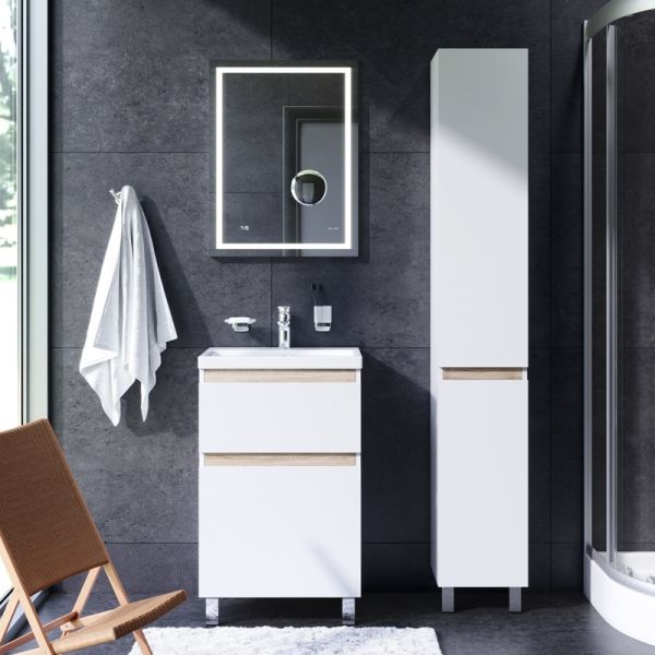 Зеркало Am.Pm Gem M91AMOX0553WG с LED-подсветкой часами и косметическим зеркалом 55 см