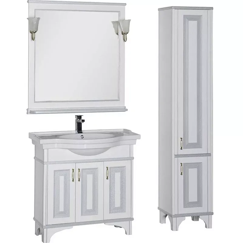 Зеркало «Валенса» — новое предложение для тех, кто решил создать ванную комнату в стиле «неоклассика», для которого характерны прямые линии, лёгкость и изящность, стремление к комфорту, гармонии. Большое белое зеркало прекрасно сочетается с белоснежной раковиной из санфаянса и пропорциями тумбы комплекта мебели Aquanet «Валенса», наполняя ванную комнату теплом и уютом. Элегантные бра в виде бутонов цветов создают мягкое освещение, только их необходимо заказать. Aquanet применяет простую и надежную систему подвеса зеркал, положение которых удобно регулировать на монтажной пластине по горизонтали и вертикали. ВНИМАНИЕ! Светильники на фото Луизиана WT-260 являются базовыми для данной модели. Они не входят в стоимость.
