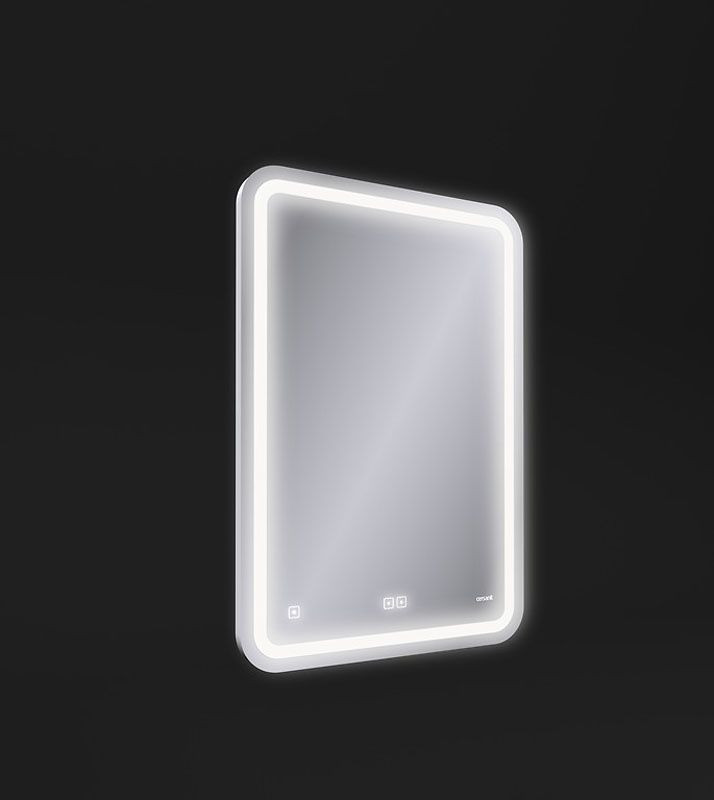 Зеркало Cersanit Design KN-LU-LED050*55-p-Os 55x80 см Прямоугольные зеркала DESIGN с полупрозрачными краями усиливают ощущение стиля в помещении. Обрамление из чётких геометричных линий лишь дополняет строгости и лаконичности изделию. В зеркало встроены часы, что позволяет следить за временем тем, кто торопится по утрам на работу. Благодаря спецэлементам стекло не запотевает, кроме того, оно не боится перепадов температуры и влаги.
