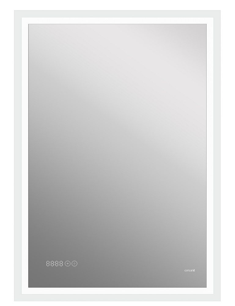 Зеркало Cersanit Design Pro KN-LU-LED080*70-p-Os 70x85 см Прямоугольные зеркала DESIGN PRO с полупрозрачными краями усиливают ощущение стиля в помещении. Обрамление из чётких геометричных линий лишь дополняет строгости и лаконичности изделию. В зеркало встроены часы, что позволяет следить за временем тем, кто торопится по утрам на работу. Благодаря спецэлементам стекло не запотевает, кроме того, оно не боится перепадов температуры и влаги.