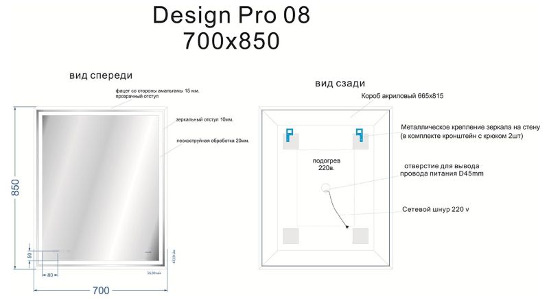 Зеркало Cersanit Design Pro LU-LED080*70-p-Os 70x85 см с антизапотеванием