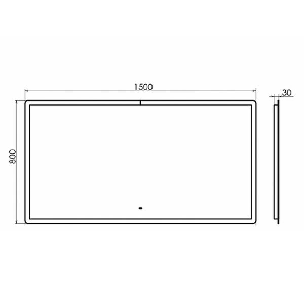 Размеры (ШхВхГ): 1500х800х30 мм.