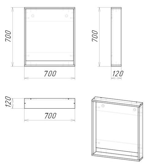 Габариты (ШxВxГ): 700x700x120 мм.