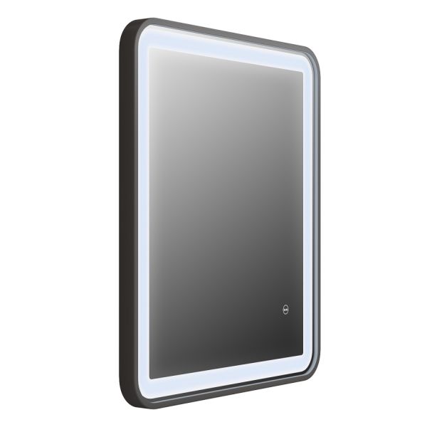 Зеркало для ванной с LED-подсветкой, 4мм. Размеры: 35х600х700 мм (ДхШхВ). Корпус сталь, цвет черный матовый. LED лента по периметру подложки. Термообогрев включается вместе с подсветкой. Сенсорный включатель, с логотипом Iddis. Упаковка: картон, пленка, пенопластовые уголки.
