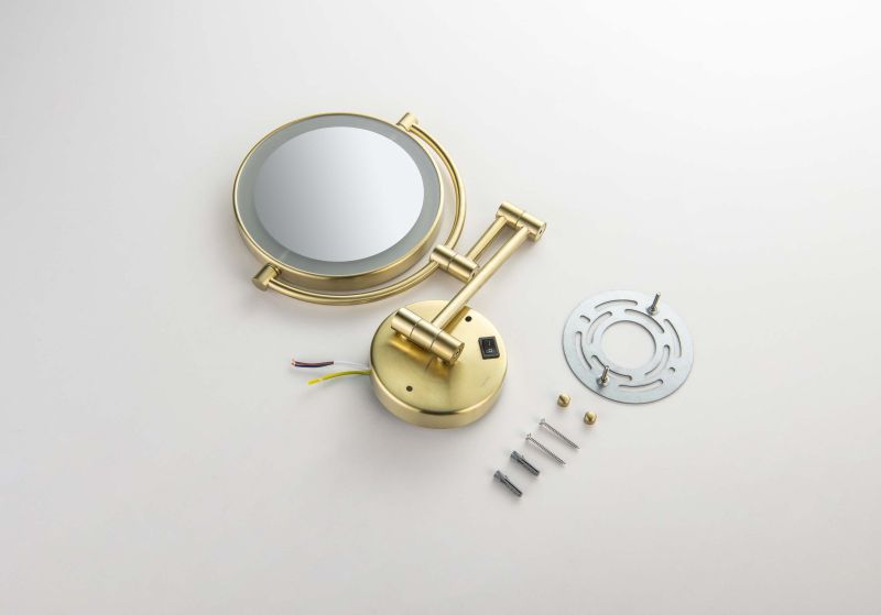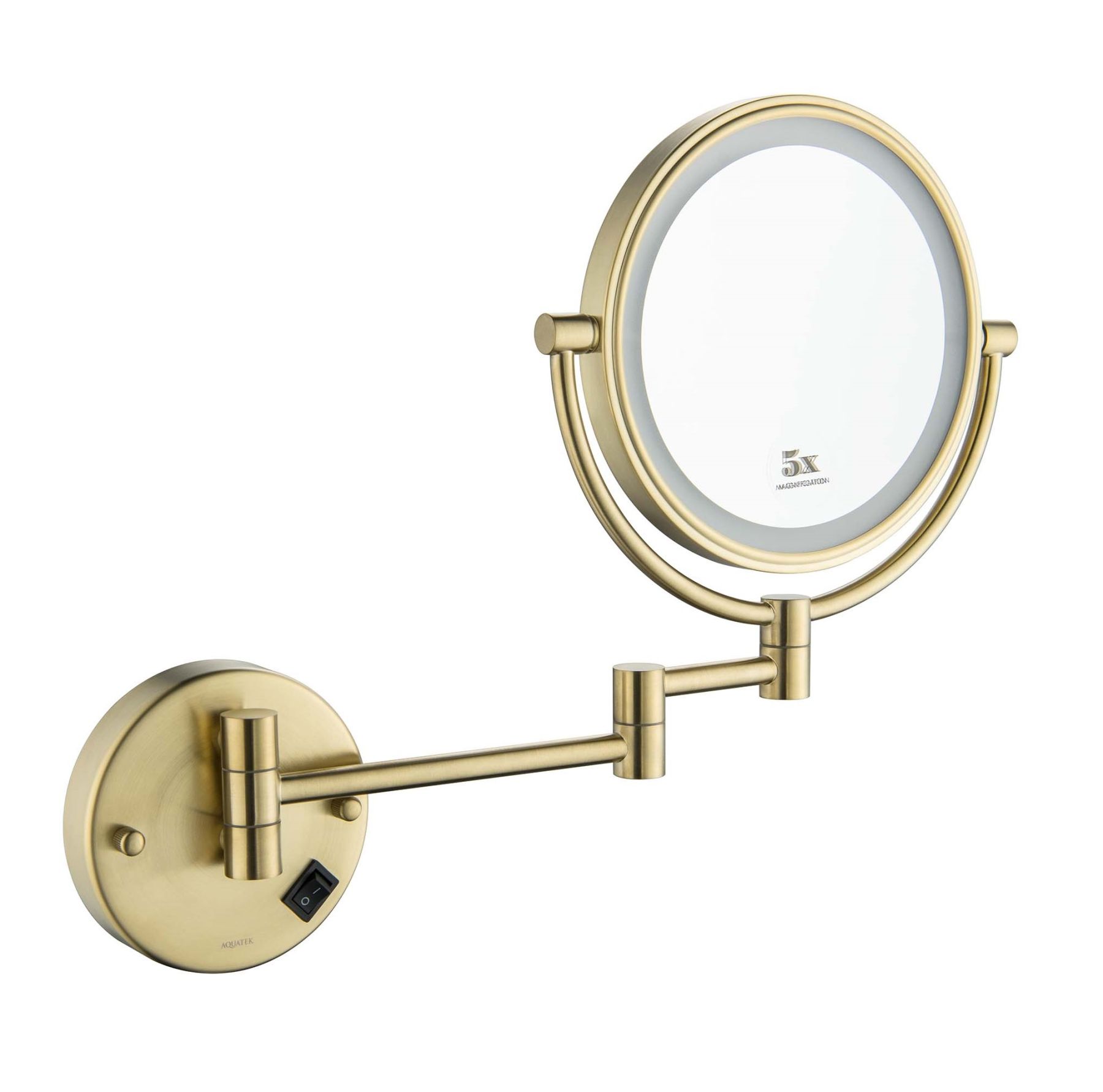Зеркало косметическое настенное Aquatek AQ4912BG с подсветкой 5х шлифованное золото