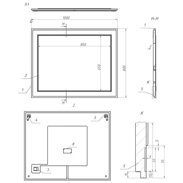 Зеркало LA FENICE CUBO FNC-02-CUB-C-100-80 (80*100) (подсветка, прямоугольное, капучино), шт